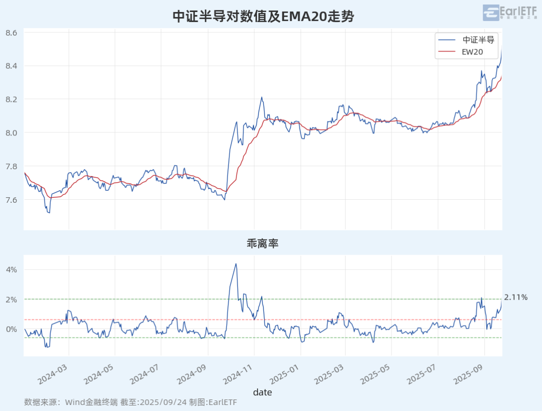 先看中证半导指数,最新乖离率 2.11%。