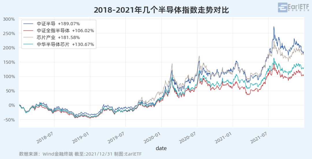 半导体是一个具有强周期的行业,下面我将两波半导体行业几个半导体指数的表现做一个对比。