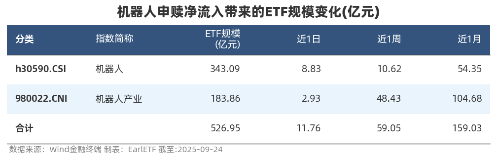 说完半导体,在分享一个其他数据。有读者因为持有机器人指数 ETF(560770.SH),想看看机器人板块的 ETF 申赎数据。