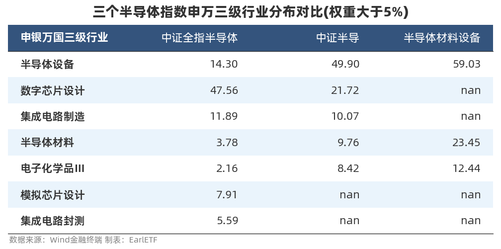 那么中证体系下这三个半导体指数到底有什么区别?